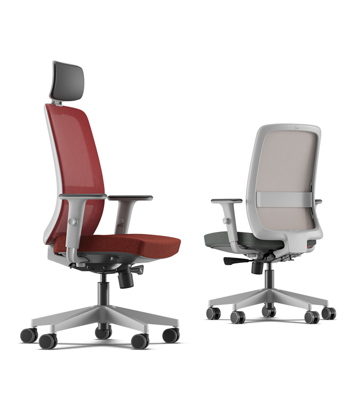 Área de contato com revestimento em espuma PU Soft Touch. | Braços | Braços ID (regulável em altura e afastamento lateral, com opção de revestimento do apoia braço em couro) e 3D (regulável em altura, avanço e ângulo do apoio PU). | Assento | Assento em espuma injetada, com regulagem de Profundidade (modelos operativos). Regulagem de Altura à Gás. Revestimentos disponíveis em Poliéster, Politex, Mescla, Grid, Haven, Space, CEC – Stilo, Vinil e Couro Natural. | Estruturas | Estruturas fixas com rodízios ou sapatas, com ou sem Braços Integrados (SI). Pintura nas cores Prata, Preto Universal ou demais opções de acabamentos das superfícies metálicas conforme disponibilidade da linha. | Bases | Opções de Bases em Alumínio ou Nylon, com rodízios de 65mm em Nylon ou PU. Rodízios de Nylon (para uso em pisos com tapetes e carpetes) ou PU (para uso em pisos frios, madeirados e rústicos). | Mecanismo | Mecanismo Syncron de 4 estágios com regulagem de tensão por manípulo frontal ou Mecanismo SRE MC, ambos com regulagem de profundidade do assento. Opção de plataforma giratória para Salas de Reunião (SR). | Tela | Membrana inteligente de alta resistência, que se adapta a curvatura da coluna proporcionando suporte e ventilação constantes. Disponível em oito cores exclusivas. | Encosto | Encosto alto em todas as versões. Apoio lombar ajustável (modelos operativos). Disponível nas cores Cinza Claro e Carbon. Opção de capa acolchoada em Poliéster, Mescla, Politex, CEC – Stilo ou Couro Natural.