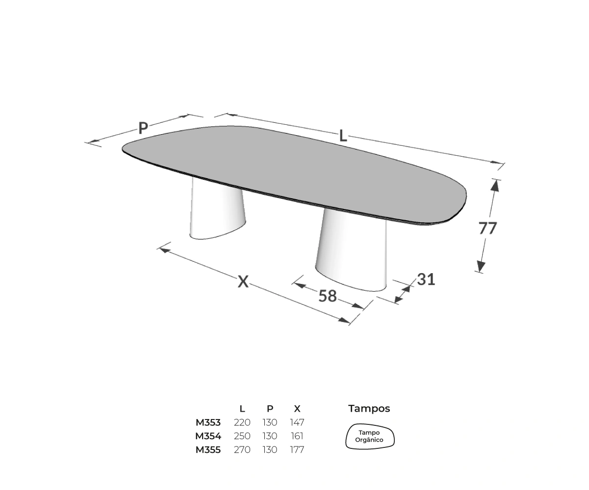 | Acabamento | Avela, Cacau, Ebano, Freijo, Laca Bianco, Laca Cappuccino, Laca Corda, Laca Fendi, Laca Metalizado Champagne, Metalizado Champagne, Natural Washed |