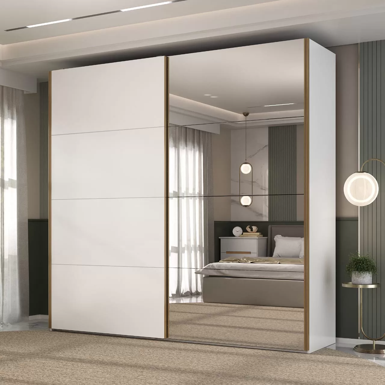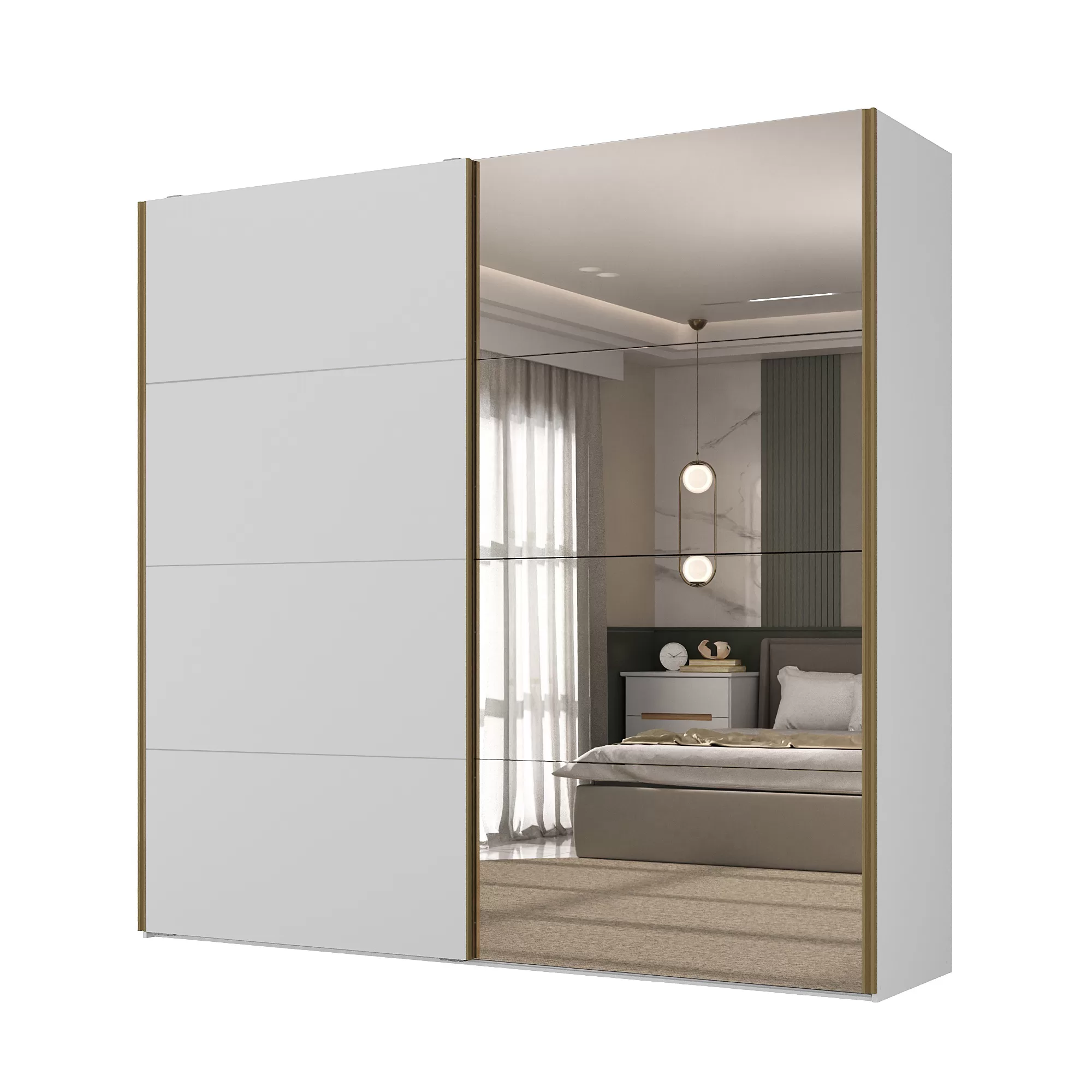 • 1029.0 Roupeiro TRENTINO 2 pts com espelho branco/branco